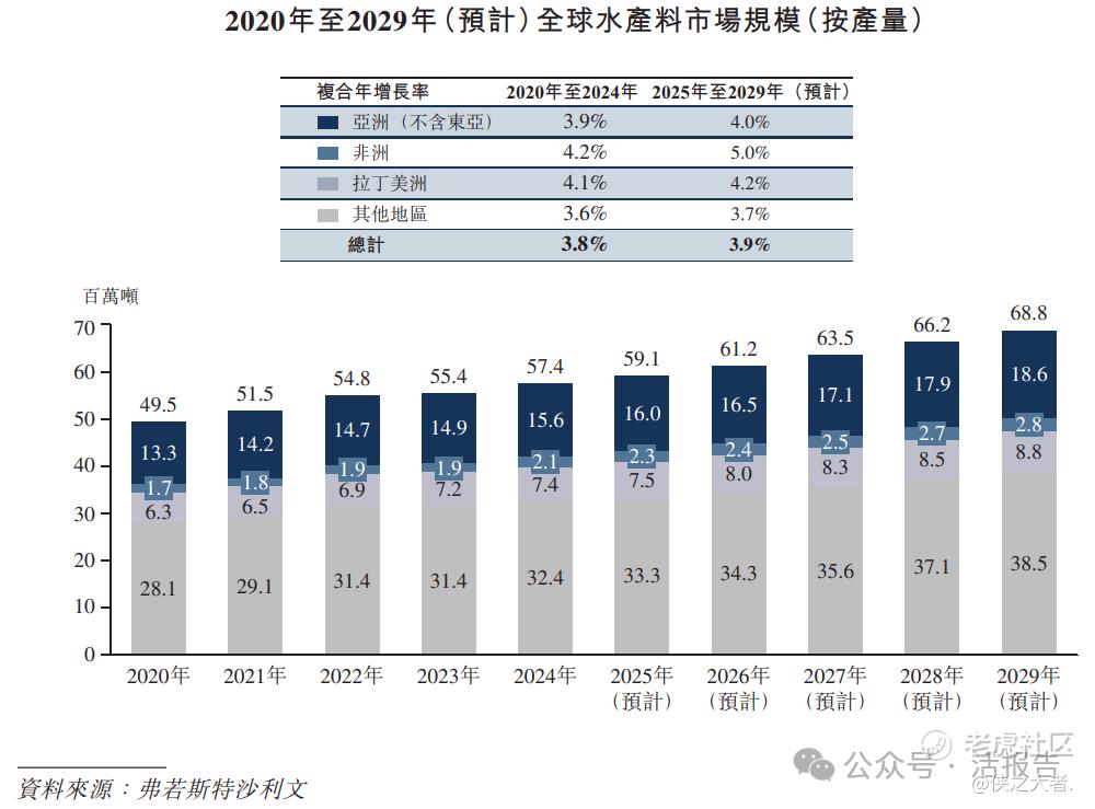 根据弗若斯特沙利文(Frost & Sullivan)的报告,亚洲(不含东亚)水产料市场规模由2020年的13.3百万吨增加至2024年的15.6百万吨,并预计于2029年达到18.6百万吨,2025年至2029年的复合年增长率为4.0%。