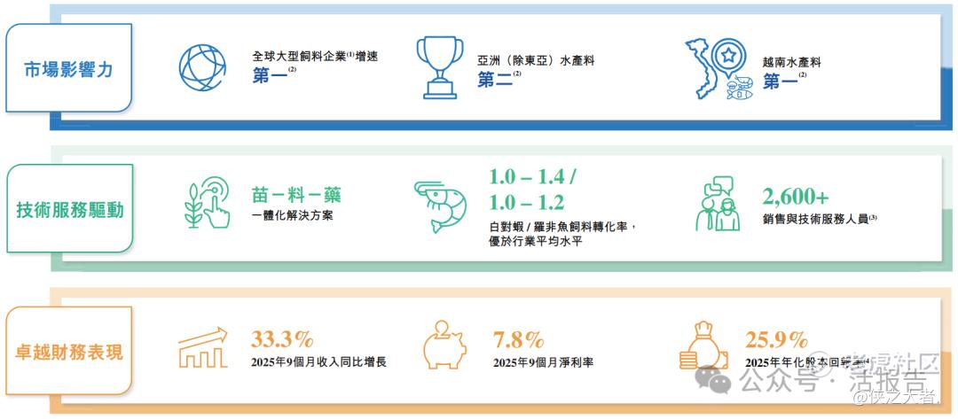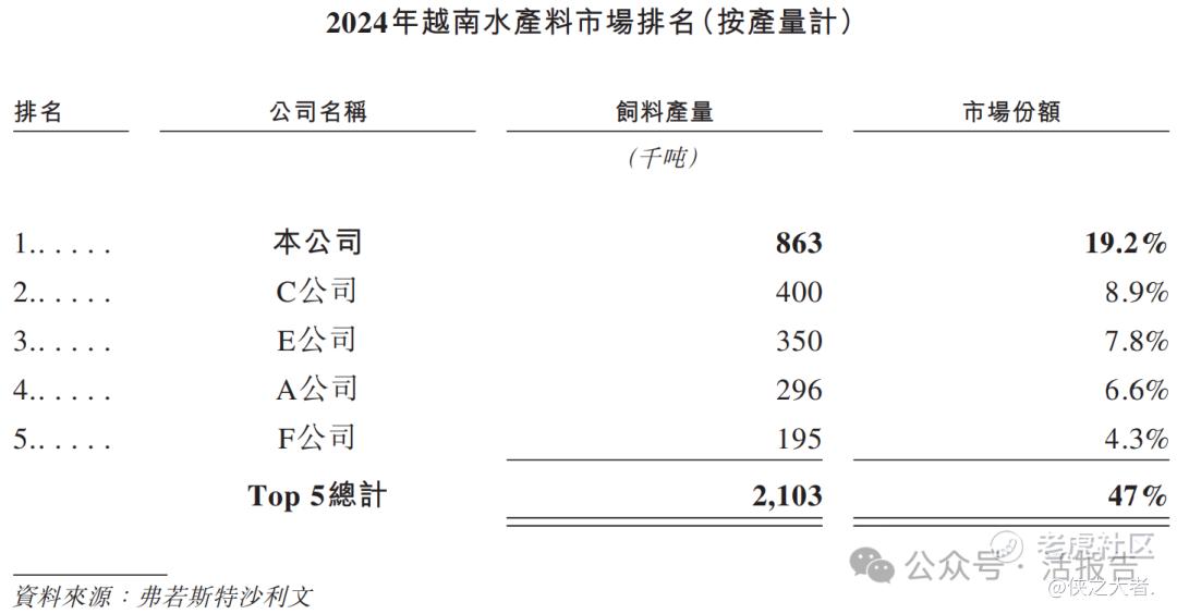 根据弗若斯特沙利文的资料,于2024年按产量计,海大国际是亚洲第二大水产料供货商,水产料产量达100万吨,也是越南第三大饲料供货商,饲料产品产量达170万吨。