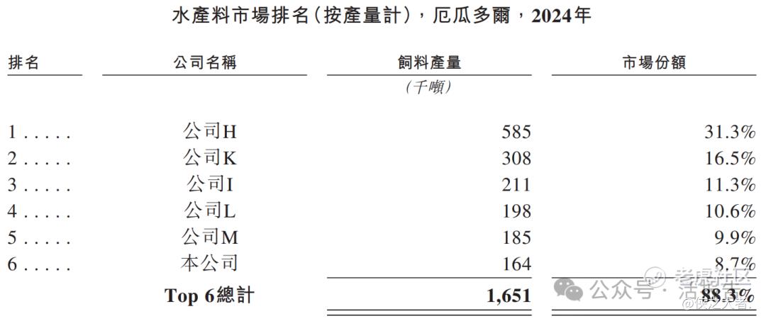 2024年,厄瓜多尔水产料市场高度集中。公司实现水产料总产量164千吨,按产量计,在厄瓜多尔水产料市场排名第六。