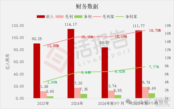 收入分别约为人民币90.25亿、114.17亿、83.87亿、111.77亿,2025年前9个月同比+33.27%;