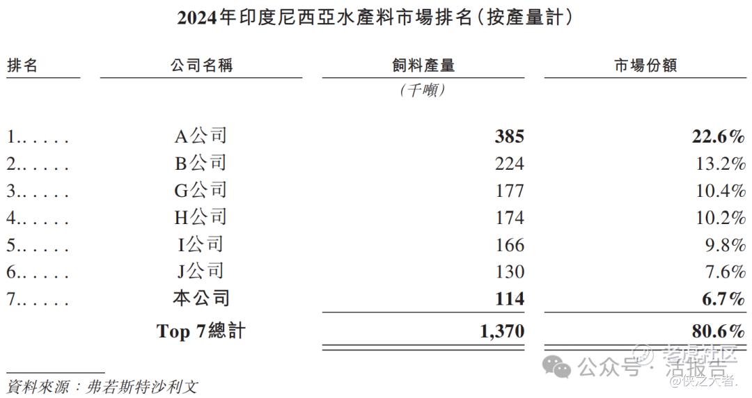 2024年,印度尼西亚地区水产料市场较为集中。其中,公司2024年实现水产料总产量114千吨,按产量计,在印度尼西亚水产料市场中排名第七。