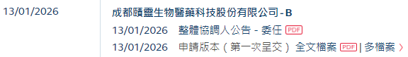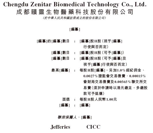 2026年1月13日,来自四川成都高新区的成都赜灵生物医药科技股份有限公司 Chengdu Zenitar Biomedical Technology Co., Ltd.(以下简称“赜灵生物”)在港交所递交招股书,拟香港主板IPO上市。