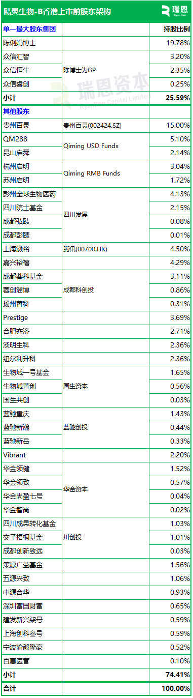 根据招股书披露,赜灵生物在香港上市前的股权架构中,