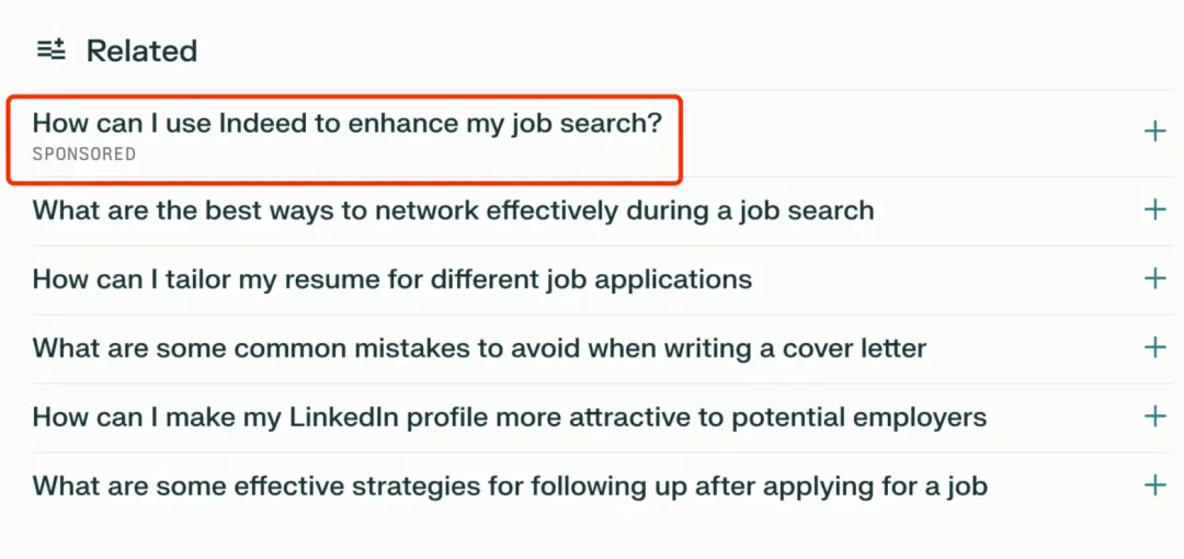 其次,广告会被清晰标注为“Sponsored”(赞助内容),和正常回答有明显区分。