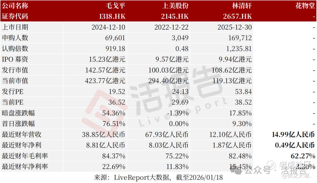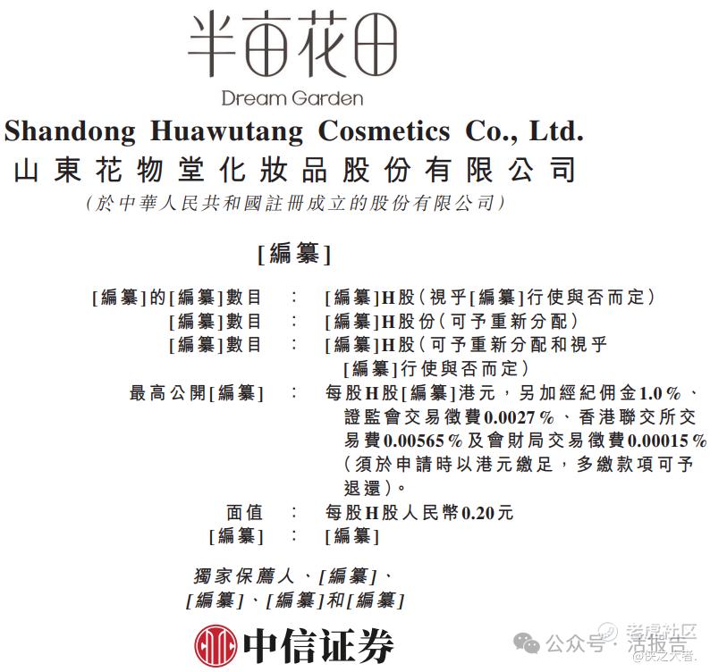 **获悉,山东花物堂化妆品股份有限公司Shandong Huawutang Cosmetics Co., Ltd.(简称“半亩花田”or“花物堂”)于2026年1月16日首次在港交所递交上市申请,拟在香港主板上市。