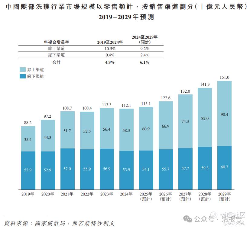 以2024年零售额计,中国发部洗护行业市场规模为人民币1121亿元。其中,线上渠道为消费者的购买提供便利性,逐渐成为消费者采购的首选。以零售额计,中国发部洗护行业线上渠道市场规模由2019年的人民币354亿元增长至2024年的人民币583亿元,复合年增长率为10.5%,并预计继续以9.2%的年复合增长率增长至2029年的人民币904亿元。