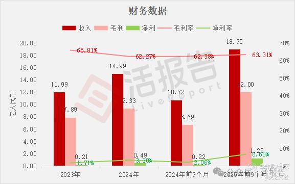 收入分别约为人民币11.99亿、14.99亿、10.72亿、18.95亿,2025年前9个月同比+76.70%;