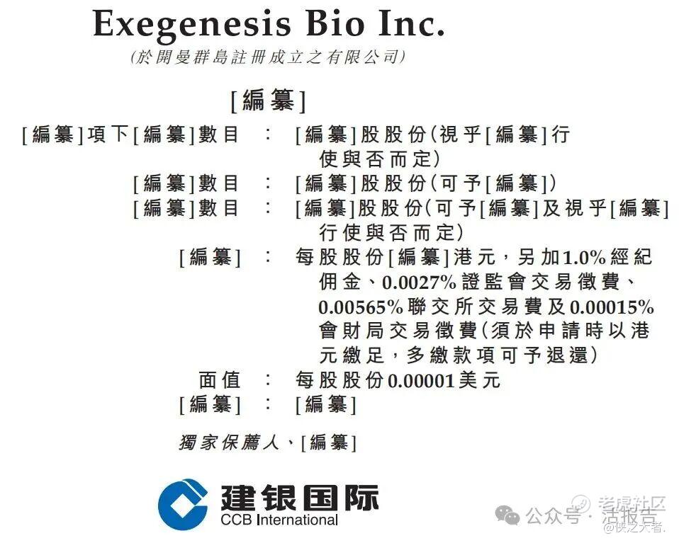 2026年1月14日,Exegenesis Bio Inc.首次向港交所递交招股书,拟在香港主板上市,独家保荐人为建银国际。