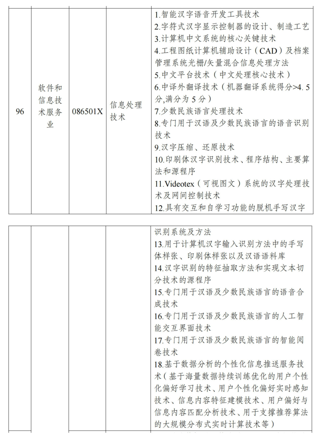 相关度最高的一类条目,集中在“软件和信息技术服务业”之下,指向的是与中文信息处理和交互能力相关的技术,包括中文语音、交互界面,以及中文语料库、关键算法等可迁移的资产。
