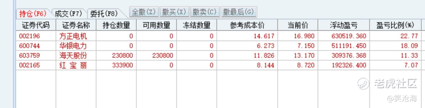 最近盘面真是拧巴,想涨但不想涨太快,现在就是小的大的里面的人都说自己买错了,由于之前谁都没经历过近4万亿的市场,也十多年没参与过四千点以上的A股,所以无论是指数还是量能,都在摸着石头过河,现在还在压节奏,那市场就会进入震荡整固,结构轮动的阶段,参考去年八月份的时候$岩山科技(002195)$ $红宝丽(002165)$ $方正电机(002196)$ $华银电力(600744)$ $海天股份(603759)$