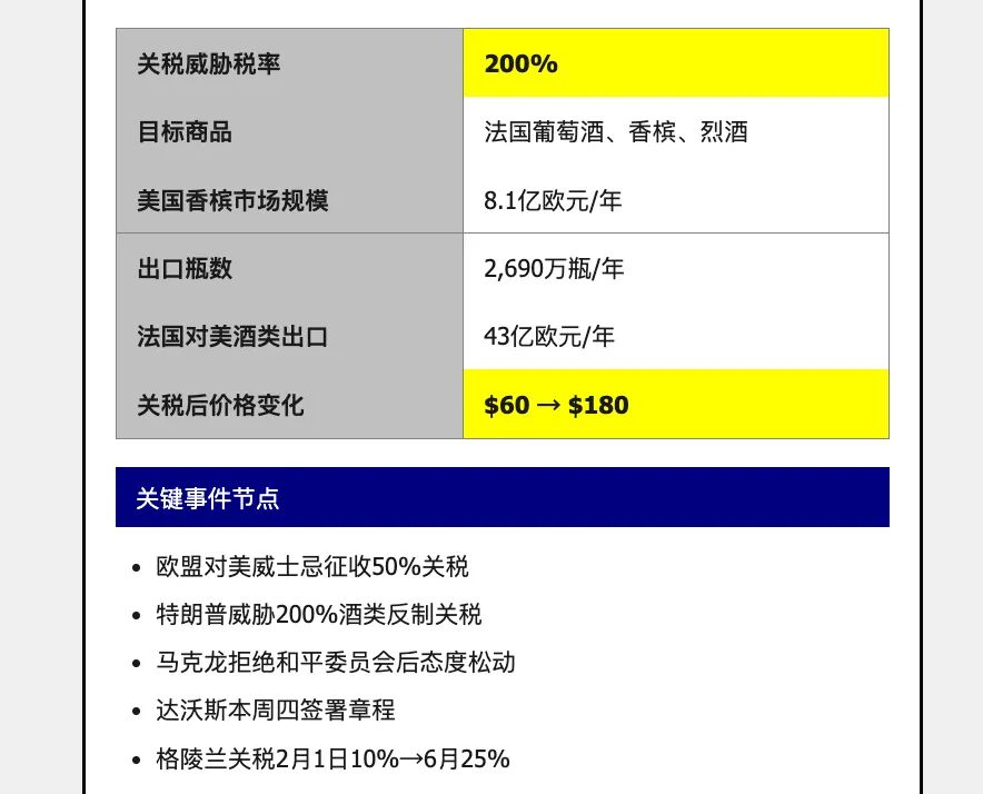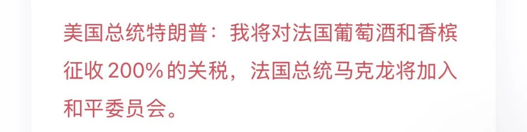 刚刚,特朗普在Truth Social再次抛出200%关税威胁,直指法国葡萄酒与香槟。