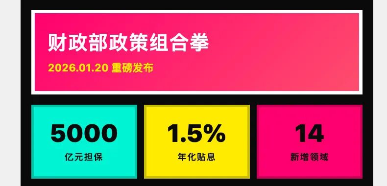 1月20日,财政部连续发布三项重磅政策通知,涉及设备更新贷款贴息扩围、5000亿元民间投资专项担保计划及中小微企业贷款贴息,多维度降低企业融资门槛与成本。