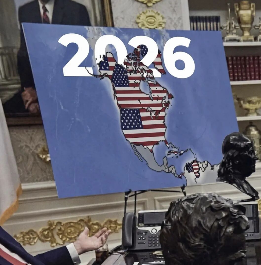 1月20日,特朗普发布一张AI生成的椭圆形办公室照片,向欧洲领导人展示的地图上格陵兰岛、加拿大和委内瑞拉已被划入美国版图。这是1月3日委内瑞拉行动后的又一个强烈信号——"American dominance in the Western Hemisphere will never be questioned again"。