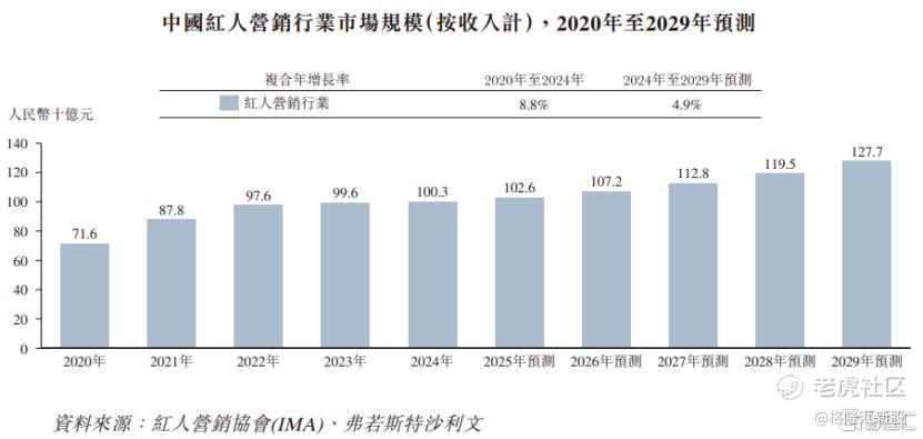 2024年中国红人经济规模约1.38万亿元,预计到2029年将扩大至2.11万亿元,2024年至2029年的复合年增长率为8.8%。