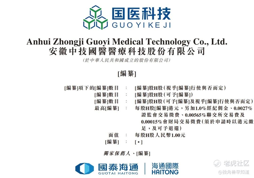 据港交所1月21日披露,安徽中技国医医疗科技股份有限公司向港交所主板提交上市申请,海通国际为独家保荐人。 $安徽中技国医医疗科技股份有限公司(临时代码)(91369)$