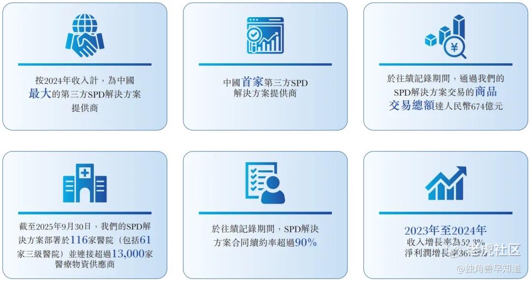 截至2025年9月30日,公司的SPD解决方案部署于中国13个省份的116家医院,包括根据弗若斯特沙利文报告已采用SPD解决方案的8家A++医院中的3家,以及91家三级医院(其中61家为三级医院)。