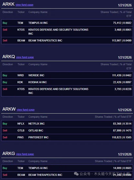 木头姐今天买入700万奈飞,昨天盘中最低到81美金左右。叠加财报刚出,不升反降。买入600万美元TEM、100万美元WRD、60万美元TRMB、20万美元KDK。