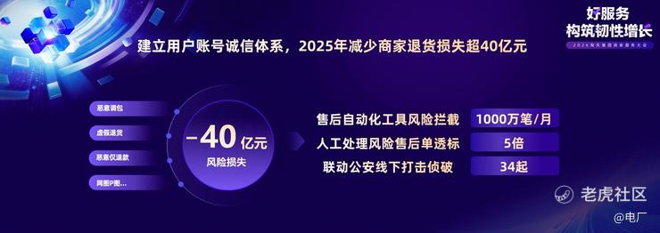以淘宝天猫为例,2025年初建立的用户账号诚信体系,迄今已累计为商家挽回损失超过40亿元;针对异常物流场景,平台协同商家大幅下调发货物流赔付比例,全年预估为商家减少超过10亿元赔付。其中,通过全链路物流节点实时监控和自动预警,叠加客服与物流的同步介入,家纺行业商家的退款率下降了37%,物流赔付降低了20%。