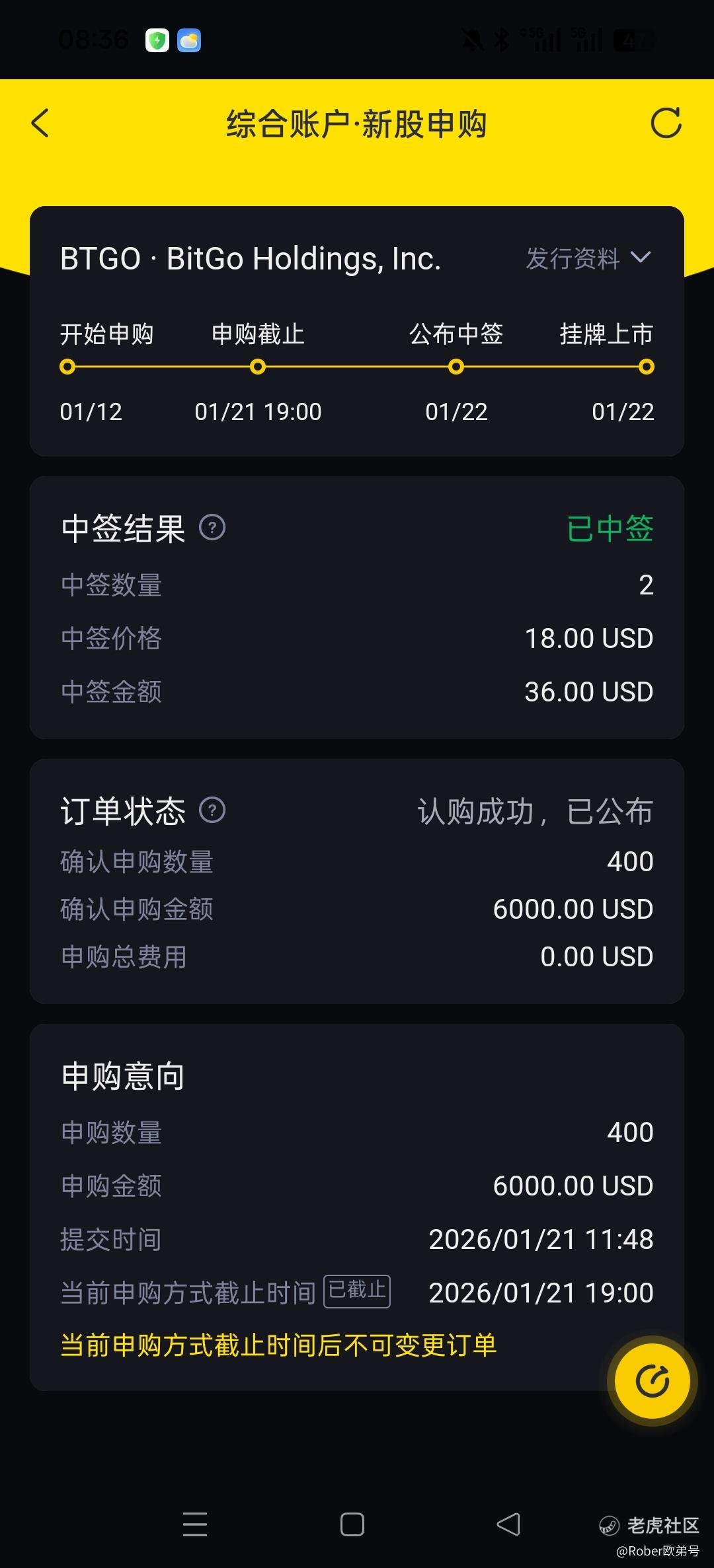 $BitGo Holdings, Inc.(BTGO)$ 某途申购400能给20股,老虎申购400股只给2股,这都被吃了吗。。。换券商