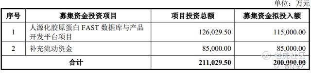资金用途分为两部分,11.5亿元将用于“人源化胶原蛋白FAST数据库与产品开发平台项目”,剩余8.5亿元将用于补充公司流动资金。