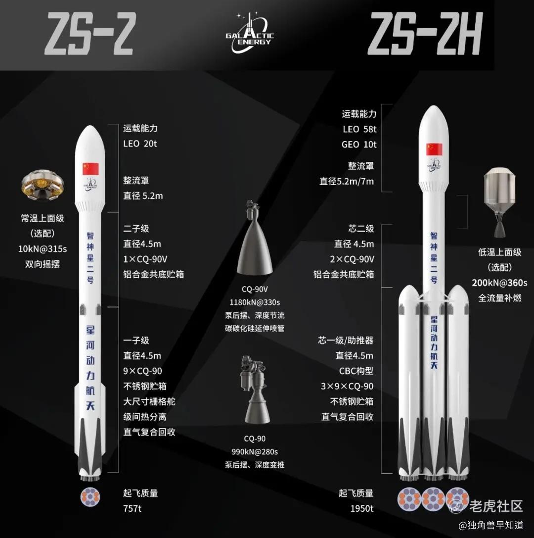在2026北京国际商业航天论坛上,星河动力总工程师李君透露,星河动力液体回收火箭智神星二号预计在2026年首飞,智神星二号运载火箭为直径4.5m的大型模块化可重复使用液体运载火箭,包括基本型和CBC两种构型:基本型起飞质量约757t,起飞推力约910t,LEO运载能力20t;CBC构型起飞质量约1950t,起飞推力约2730t,LEO运载能力58t。