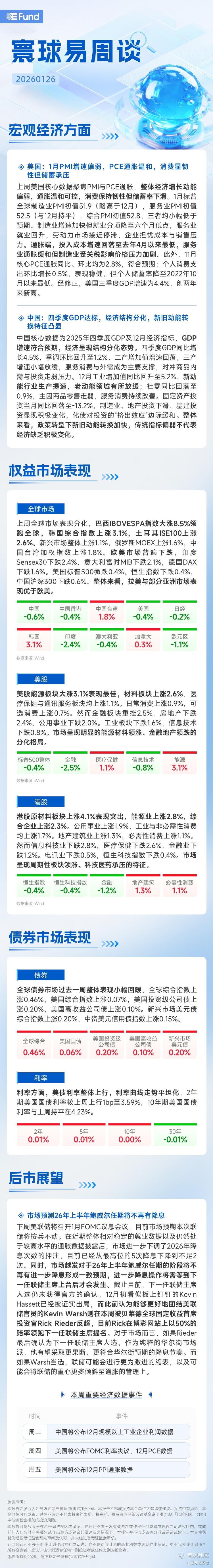 寰球易周谈 | 美国1月PMI增速偏弱,中国四季度GDP达标,巴西权益市场领跑
