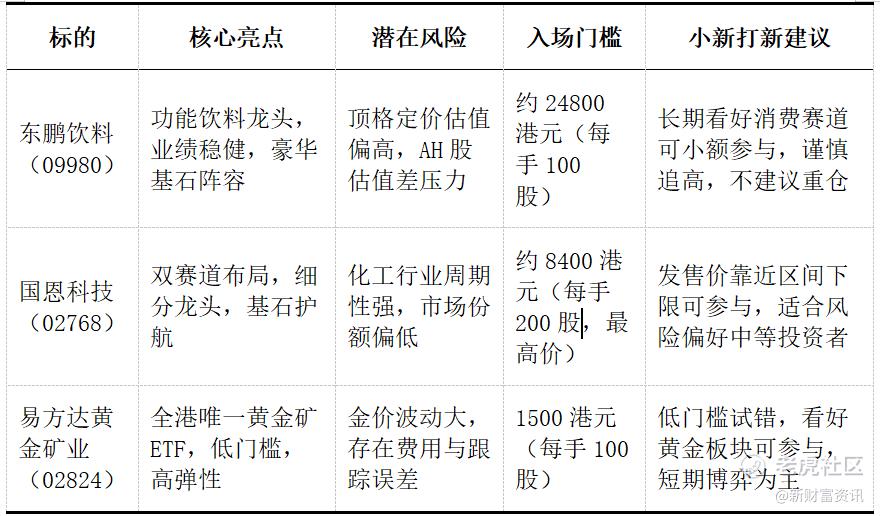 最后提醒大家,港股打新并非稳赚不赔,需警惕市场波动与个股风险,合理控制仓位。后续小新也会持续跟踪这三只新股的上市表现,为大家带来最新解读,记得持续关注哦!