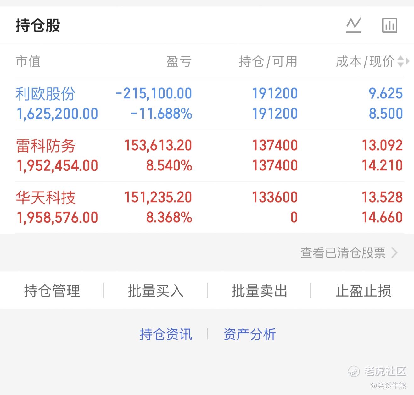 炒股,就是不断认识自己的过程。你是什么人,就该赚什么钱。每个人都只能赚自己认知内的钱,如果意外赚了认知外的钱财,没德才兼备,没大格局,没大视野,很快就会又还回市场了。$利欧股份(002131)$ $雷科防务(002413)$ $华天科技(002185)$
