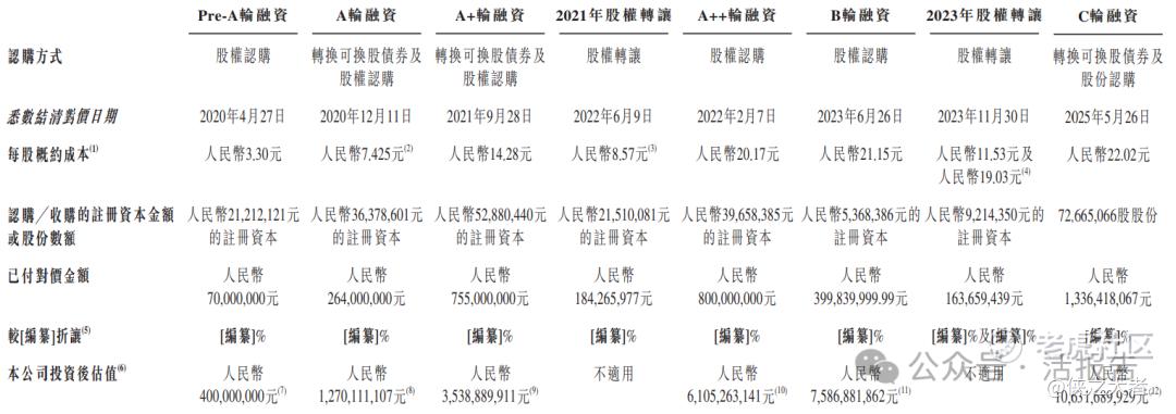 公司上市前经历了多轮融资,累计融资39.7亿元人民币。在2025年5月的C轮最新融资中,公司的投后估值约为106.3亿人民币。