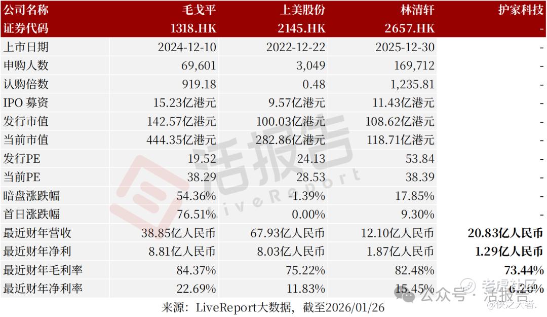 同行业IPO可比公司:毛戈平(1318.HK)、上美股份(2145.HK)、林清轩(2657.HK)