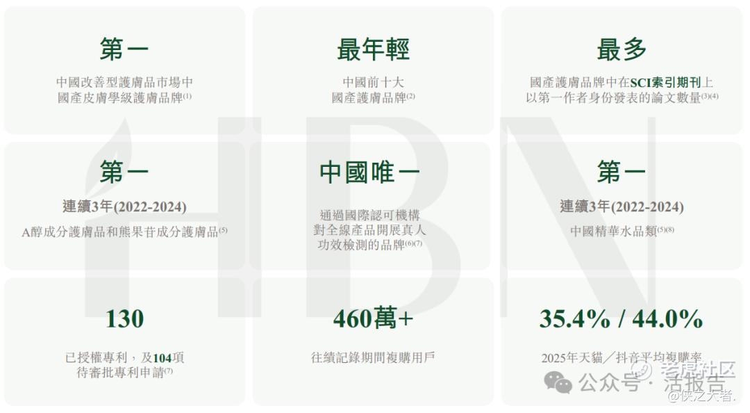 根据招股书,按2024年护肤品零售额计,HBN已发展为中国护肤品市场前十大国产品牌中最年轻的品牌,亦是中国改善型护肤品市场中最大的皮肤学级国产护肤品牌。
