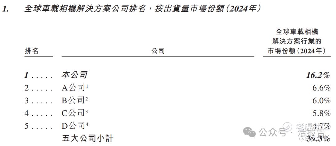 以2024年出货量市场份额计,公司在全球车载相机解决方案公司中排名第一。