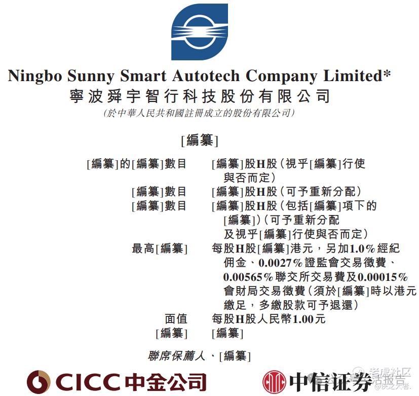 **获悉,宁波舜宇智行科技股份有限公司Ningbo Sunny Smart Autotech Company Limited*(简称“舜宇智行”)于2026年1月26日首次在港交所递交上市申请,拟在香港主板上市。