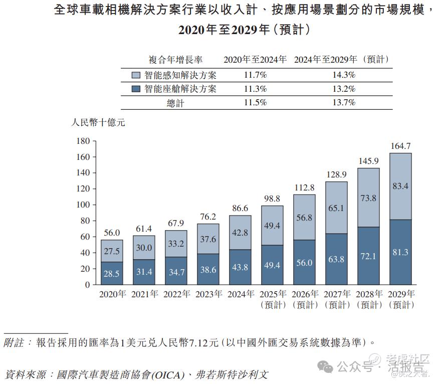 根据弗若斯特沙利文(Frost & Sullivan)的报告,2020年至2024年,全球车载相机解决方案市场规模由人民币560亿元增长至人民币866亿元,复合年增长率为11.5%。预计2024年至2029年,全球车载相机解决方案市场规模将由人民币866亿元增长至人民币1,647亿元,复合年增长率为13.7%,