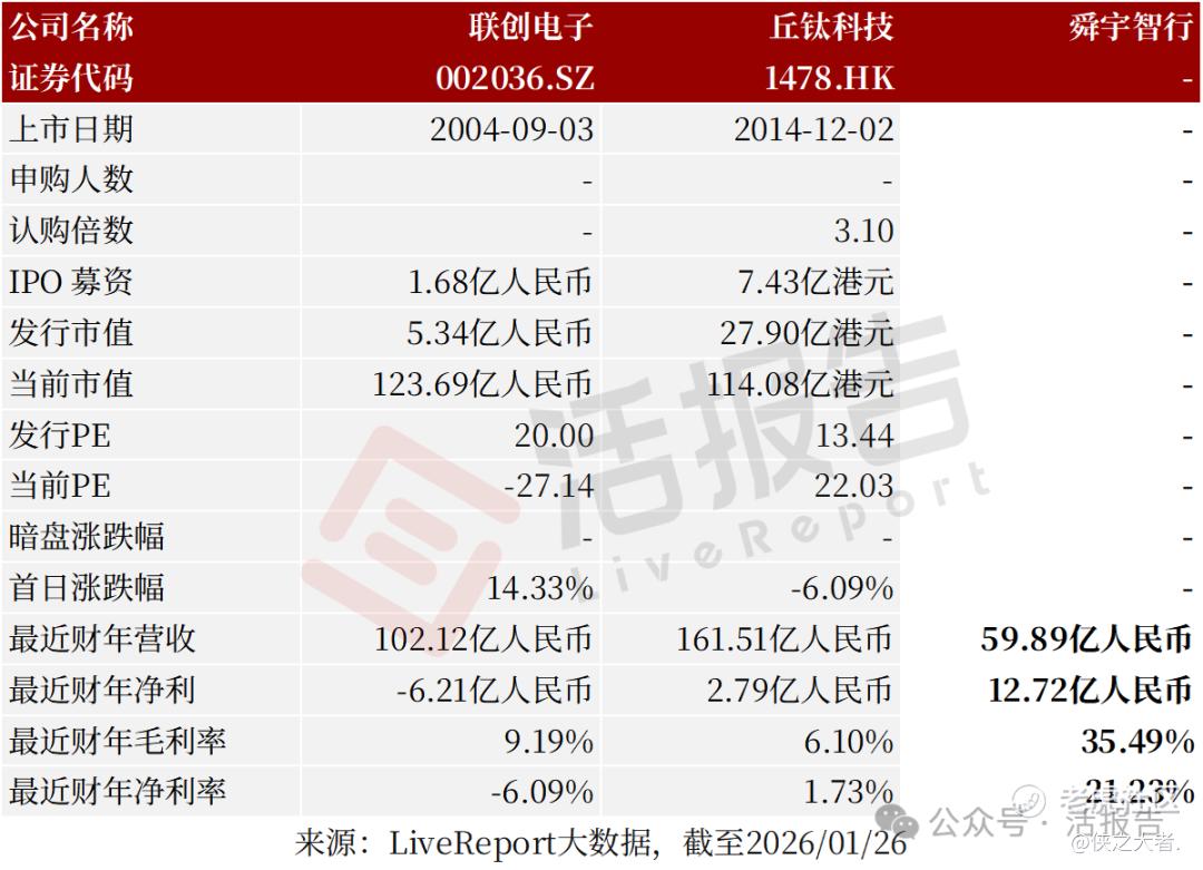 同行业IPO可比公司:联创电子(002036.SZ)、丘钛科技(1478.HK)