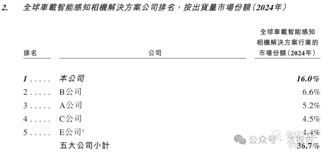 以2024年出货量市场份额计,公司在全球车载智能感知相机解决方案公司中排名第一。