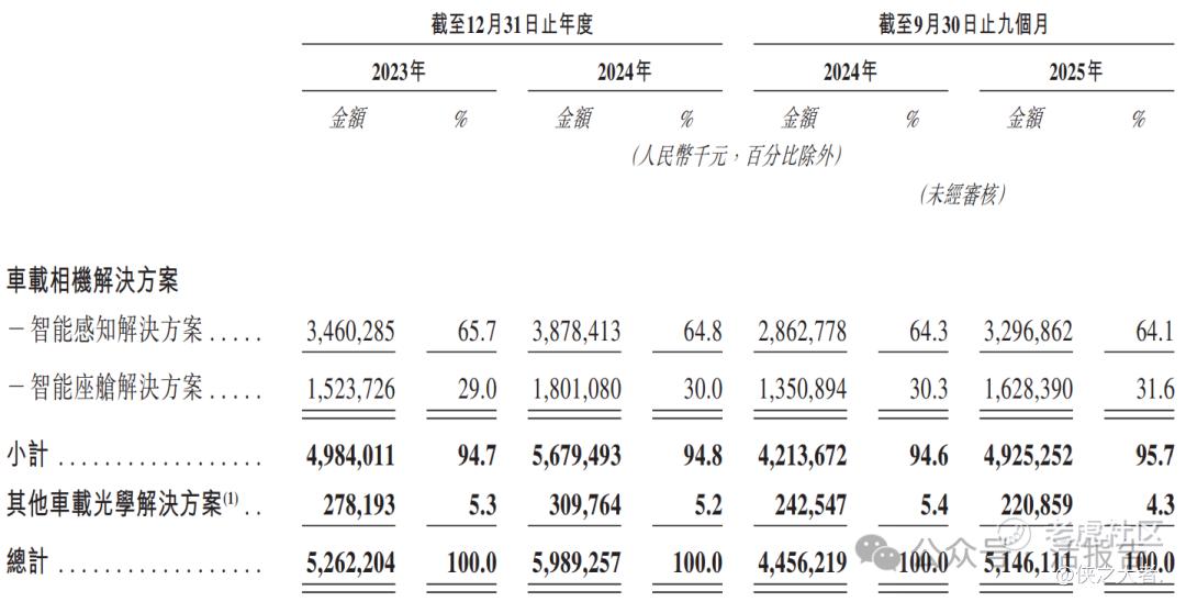 公司收入主要来自车载光学相关解决方案,重大部分来自车载相机解决方案,2023年及2024年该类业务占总营收比例均超90%,其他车载光学解决方案营收占比小。