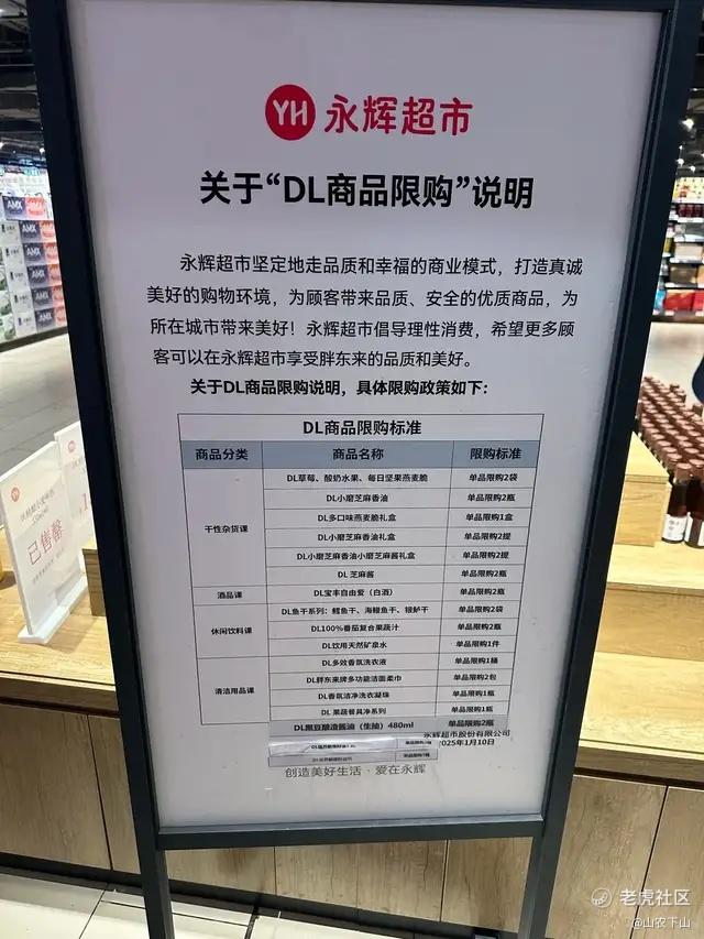 永辉超市里张贴的胖东来自营商品限购的说明