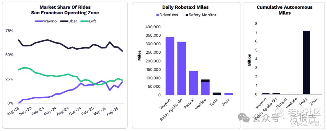 随着自动驾驶出租车的普及,由更先进的数据和算法驱动的自动驾驶出租车将更具规模化优势,例如Waymo正在对Uber和Lyft在旧金山的市场份额构成压力。特斯拉凭借其FSD技术,在这方面占据了有利地位。