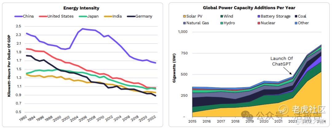 能源效率的不断提高,正在推动经济增长。尽管互联网繁荣期间曾有对能源密集度的担忧,但经济体实际上变得更加节能,AI时代可能重现同样的动态。