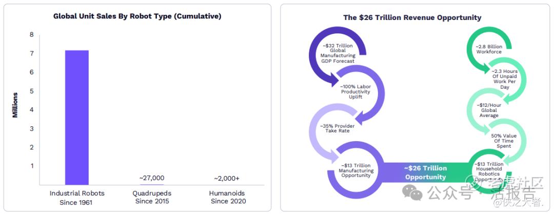 过去60年来,自动化一直侧重于结构化的流程。为了释放工业和家用市场的潜力,自动化必须从执行固定任务的专用设备转向相对开放的通用平台,而这有望创造26万亿美元的商机。