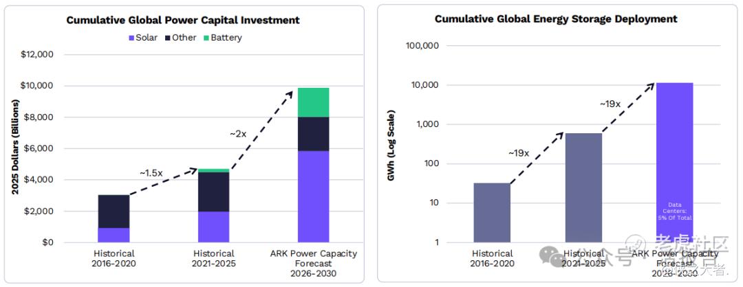 此外,鉴于ARK对GDP快速增长的预测,为满足全球电力需求,到2030年发电领域的资本支出必须扩大约2倍,达到10万亿美元。因此,固定式储能设施的部署规模需再扩大约19倍。
