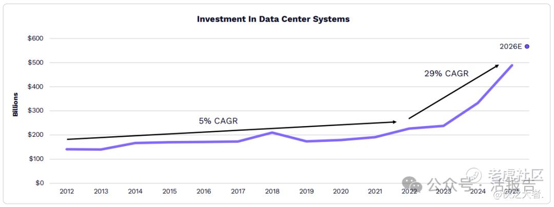 自ChatGPT发布以来,数据中心系统的年化增长率已从5%攀升至29%。2025年,数据中心系统的年度投资额约为5000亿美元,几乎是2012年至2023年平均水平的2.5倍。到2030年,这一投资规模可能增长两倍至1.4万亿美元。