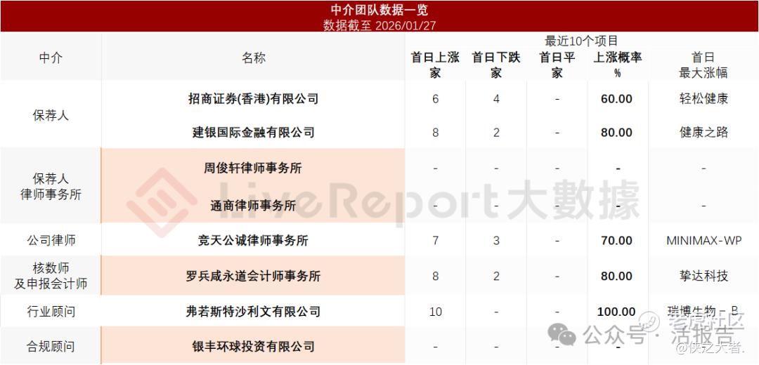 据**大数据统计,奥科达中介团队共计8家,其中保荐人2家,近10家保荐项目数据表现普通;公司律师共计1家,综合项目数据表现中规中矩。整体而言中介团队历史数据表现尚可。