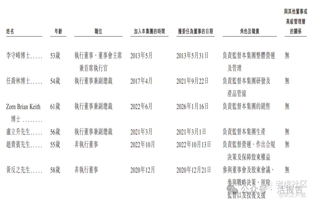 公司董事会将由九名董事组成,其中包括四名执行董事、两名非执行董事及三名独立非执行董事,其中李守峰博士为公司董事会主席、执行董事兼首席执行官,其主要负责公司的整体营运及管理。