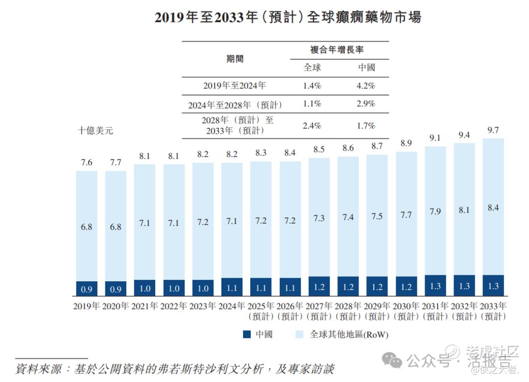 根据弗若斯特沙利文(Frost & Sullivan),中枢神经系统疾病市场,尤其是癫痫细分市场,是推动改良型新药开发的主要驱动力之一。2019年至2024年期间,全球癫痫药物市场从76亿美元增至82亿美元,复合年增长率为1.4%;预计到2033年将达到97亿美元,2028年至2033年期间的复合年增长率为2.4%。中国癫痫药物市场增长更为强劲,从2019年的9亿美元增至2024年的11亿美元(复合年增长率为4.2%),预计到2033年将达到13亿美元。