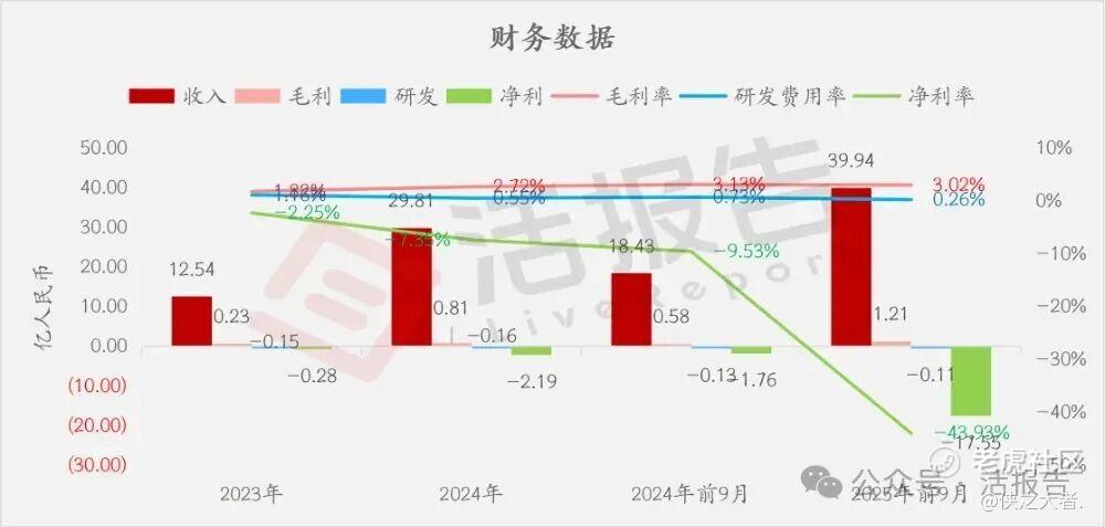 公司是一家数智化驱动的企业,2024年收入29.81亿元,净亏损2.19亿元,毛利率2.72%。2025年前9月收入39.94亿元,净亏损17.55亿元,毛利率3.02%。2025年前三季度亏损扩大。