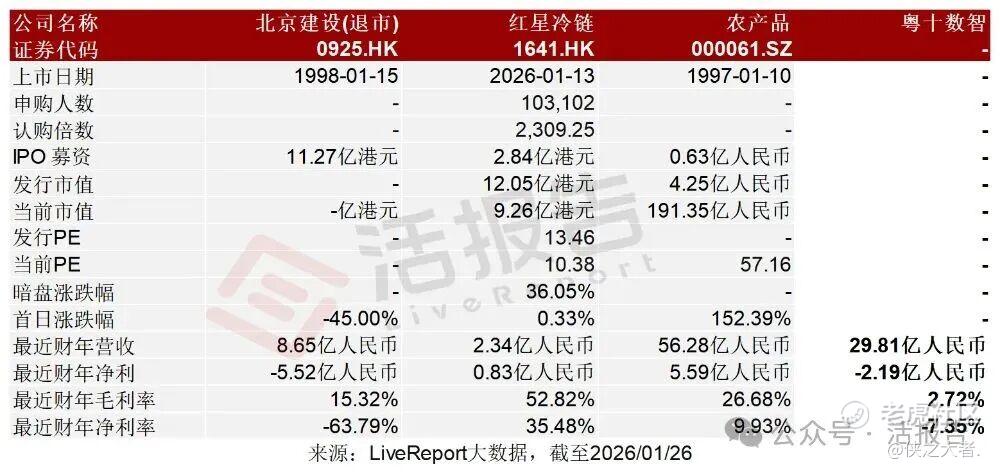 北京建设(退市)(0925.HK)、红星冷链(1641.HK)、农产品(000061.SZ)