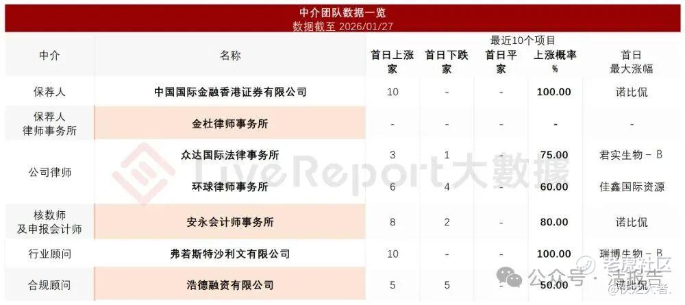 据**大数据统计,聚辰半导体中介团队共计7家,其中保荐人1家,近10家保荐项目数据表现优异;公司律师共计2家,综合项目数据表现普通。整体而言中介团队历史数据表现尚可。