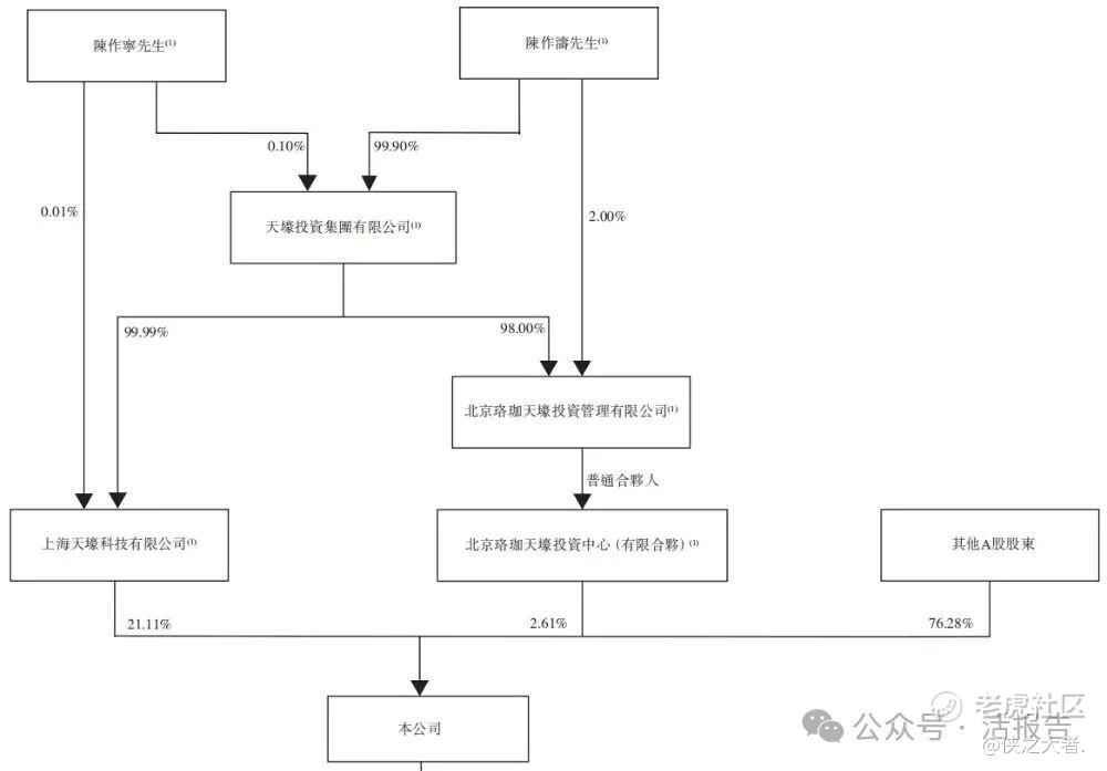 陈作涛先生、陈作宁先生、天壕科技、珞珈投资、天壕投资及珞珈管理构成公司的单一最大股东集团,持有公司约23.72%股份。